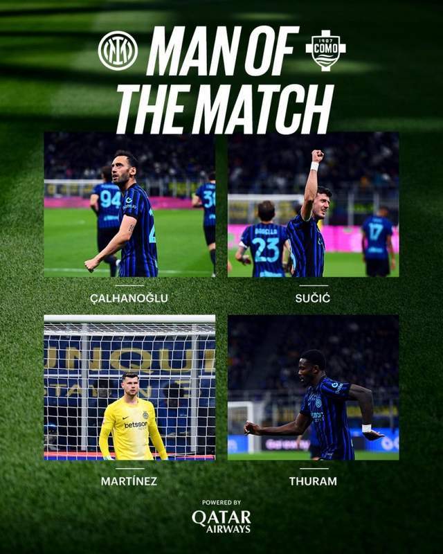 恰尔汗奥卢梅开二度成为逆转功臣,替补出场的苏契奇贡献2助攻1进球完成绝杀。这是国米队史第16次晋级意大利杯决赛,该次数仅次于尤文(22次)和罗马(17次)。自2000年以来,仅尤文(11次)的晋级次数多于国米(10次)。